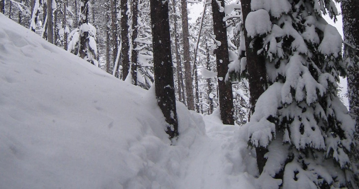 Over the years, I’ve come to enjoy traveling on skis through the snow so much that I don’t even need the lure of a big peak and its attendant downhill schuss. Close to half of my ski outings now consist of exploring Forest Service roads and following animal tracks through the woods. I still very much consider this backcountry skiing. There are no groomed routes, no signs warning of steep descents or that the old road I’m on might simply end around the next bend. There are no lodges, no roaring fires behind comfortable couches waiting for me at the bottom of the hill, just a cold truck and some semi-frozen Gatorade. The forests are quiet and softened by the snow. Muted voices barely reach their intended recipient. If I’m out alone, which I often am, I choose my route based solely on my momentary whims. Follow those elk tracks – yes I think I will. Switchback up that shoulder – sure what the heck, I’ve always wondered what’s on the other side of that ridge. Turn around and head home? Not quite yet, but soon.