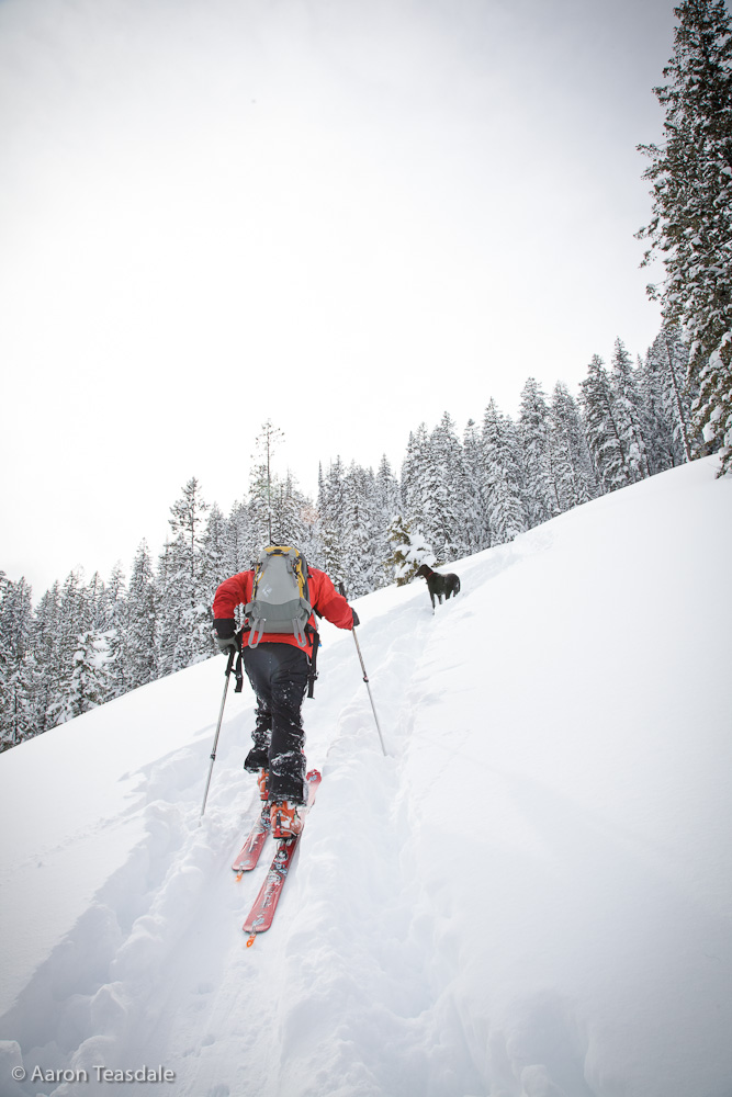 Backcountry skiing is freeing in a way few other pursuits can match. No dense undergrowth prevents your passage through the woods. No trails or signs compel you one way or another. No engineer or chainsaw-wielding resort employee dictates your route up or down the mountain. All the supplies you need are on your back, ready for you to use. The lifts don’t close at 4:00. There’s no compulsion to get as many runs as possible because you just spent 75 bucks on a ticket. No first chair to get in line for, no “no friends on a powder day” philosophy. There is simply you, your friends (or loyal dog), fresh snow, and the knowledge that once you get to the top, gravity will get you back down again.